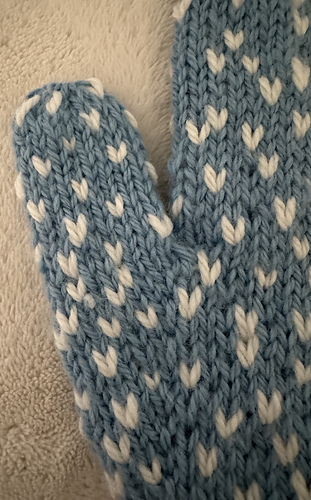 This is a really warm and fun set of mittens to make. The stranded colorwork and long wrist ribbing make it warmer than single yarn mittens. You can use one color and ignore the color changes, if you’d rather or need them more quickly!