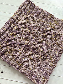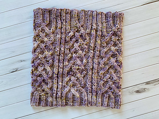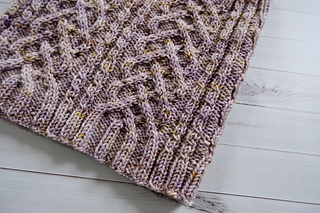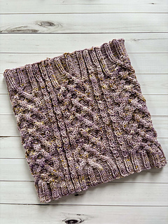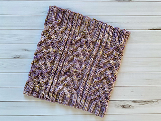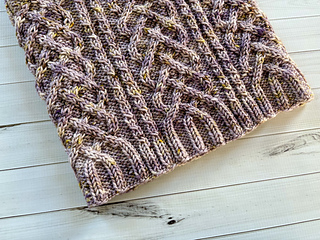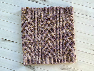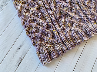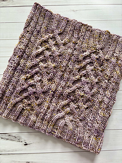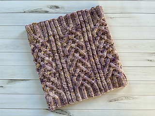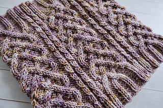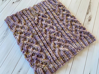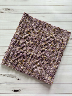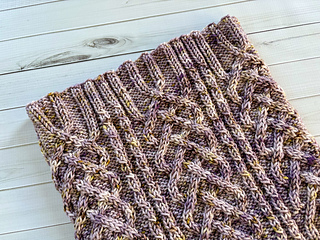 The Snowy Creek Cowl features a main cable that is replicated around the cowl and sandwiched in between columns of twists. The cowl is worked from the bottom up. It is an easy knit and uses only 2/2 and 1/1 cables.