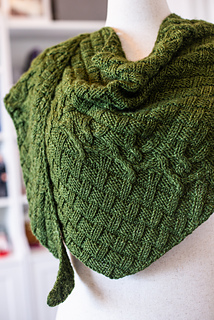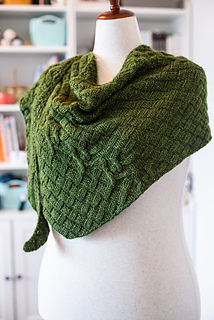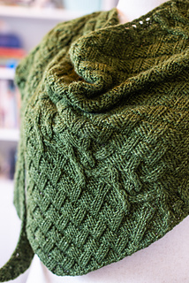 Instead of your typical garter or stockinette to serve as the backdrop of this shawl I decided to use a simple knit/purl pattern that creates a woven texture. Just when you are getting a wee bit tired of this pattern you will come to the fun cable portion of the program to break things up in both your knitting and the visual appearance of the shawl. None of the cables are particularly challenging and everything else is k/p.