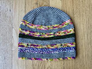 Sock Tex is the baby brother of my Tex beanie pattern, which uses worsted/aran yarn. It’s crocheted from the top down in half-double crochet and half-double crochet through the third loop for the stripes.
