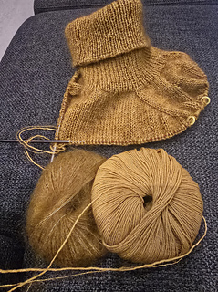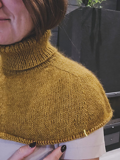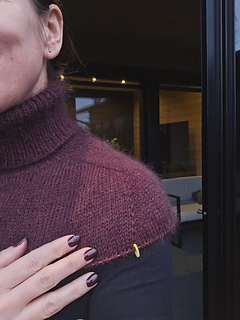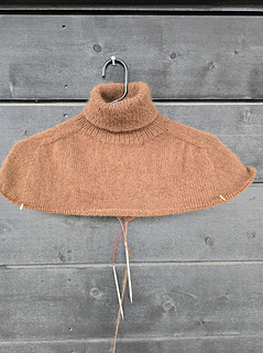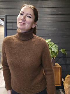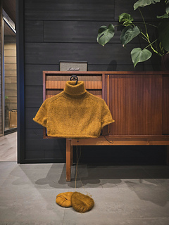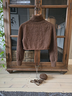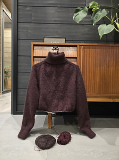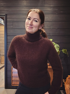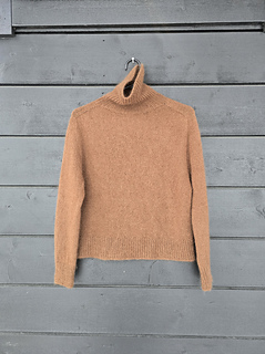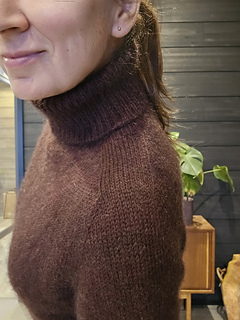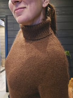 The whole piece is worked in the round on circular needles, beginning from the back of the neck, top down. There is short row shaping for the back of the neck to improve the fit. The sweater has saddle shoulders. Sleeve stitches are left on hold on scrap yarn and the sleeves are worked in the round on dpns.