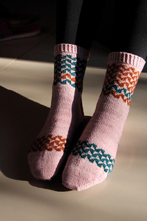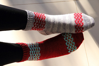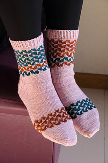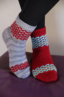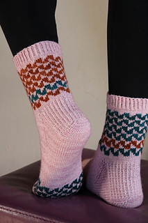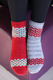 This versatile design offers three different versions by combining two or three colors, making it perfect for using mini-skeins or yarn scraps with one main color. The same simple chart transforms completely when you change the contrasting colors, allowing you to create entirely different looks while maintaining the same geometric design.