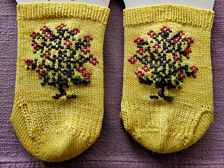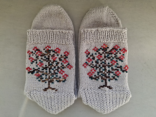 Jag har valt att placera mönstret på skaftets baksida då jag tänker att jag bär sockan i träskor eller hällösa sandaler, men de funkar även bra i en sko med låg hälkappa. Du kan givetvis placera ditt mönster var du vill på sockan.
