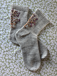 Sockan Sommar stickas från tån och upp och har en häl med hällapp för bästa passform, kilen är placerad under foten. Foten är helt slät förutom den förstärkta hälen. Fotens skaft har ett roositudmönster (tekniken kallas även roosimine). Denna teknik förekommer främst på estniska vantar och knästrumpor. Att göra roositumönster kan närmast jämföras med att brodera plattsöm samtidigt som man stickar. På dessa sockor har jag använt tekniken till ett mer organiskt mönster än man traditionellt gjort.