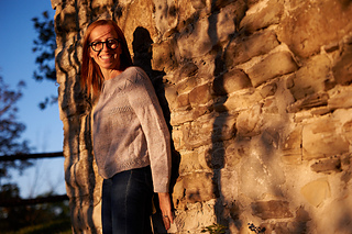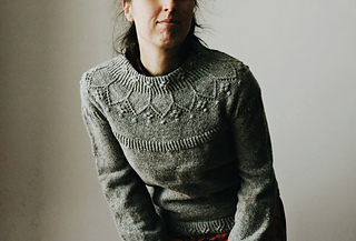 This sweater is knitted in the round from the top down. The back of the sweater is shaped with German short rows. Decorative Wrapped Stitches (a video tutorial is included in the pattern) create subtle bobbles around the yoke and hem. Instructions are written for short sleeves and long sleeves.
