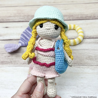 Sophia uses Hobbii Rainbow Cotton 8/4 and Hobbii Baby Cotton Organic Pastel Print. When using the recommended hook size, yarn and yarn under (x stitch), she measures 5.5 inches/13.97 centimeters.