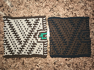 Inspired by the spell book “BOOOOOOOOOOK!” from Hocus Pocus, this pattern is worked in 2-3 color Mosaic knitting. Prior knowledge of this knitting method is required. There is an option to do the book without the eye- as just a clasp, or with the 3rd color eye that is nearly squinting.