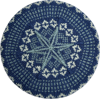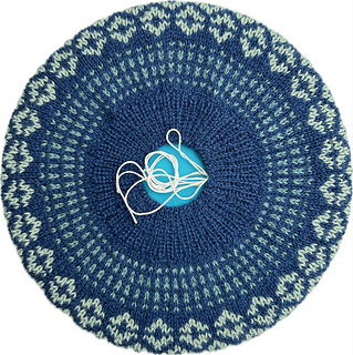 Garn: 2-tråds Sjølingstadgarn (350 m/100 g), eller annet lignende 2-tråds ullgarn. Luen strikkes med en bunnfarge og to mønsterfarger: Ca. 40 g i bunnfarge og 15 g hver i mønsterfargene. Fargene som er brukt er: BF Blåbær 227, MF1 Grå petrol 208 og MF2 Lys mint 207.