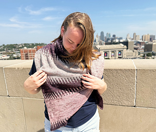 Inspired by the sharp silhouettes of skyscrapers piercing the sky, Spire Shawl captures the rhythm of a cityscape in stitches. The colorwork motif rises and repeats like spires atop towers—intertwined, tessellated, and full of quiet momentum.