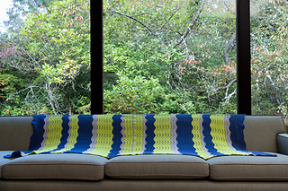 Create this easy three color ripple stitch stadium blanket for the sports fan in your life! Worked side to side, the width can be easily customized as the ripple stitch pattern uses a multiple of 12 stitches plus five for the starting chain. Length is also easily changed - it all depends on how many row variations you stitch with each color. Blanket as pictured contains wide rows (12 rows) alternated with narrow rows (6 rows).