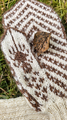 The yarn used for featured mittens in the pattern is Tynn Per Gynt by Sandnes Garn, but any fingering weight yarn you prefer is of course okay.