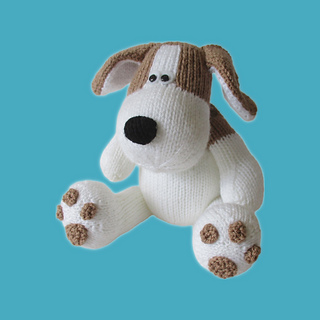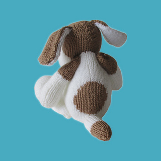 Knit Spot the huggable puppy using intarsia colour-work patterns in stockinette, with increases and decreases for shaping. Designed by Amanda Berry @fluffandfuzz, Spot is knitted in acrylic DK yarns on single pointed needles (not in the round).