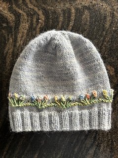 The flower motif is knitted as you go, not embroidered later…and it’s easier than it looks.