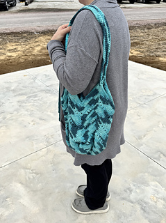 A nice bag pattern created in the round. Fun design with a quick and easy round repeat. Nice texture with some fun stitches. Easily adjusted to any size/length.