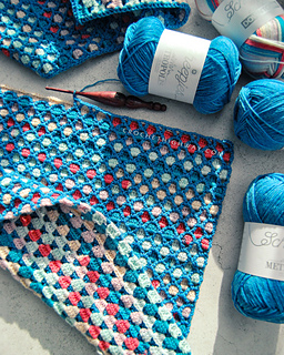 Contrast color (granny stitch on the WS): Scheepjes Downtown (75% Extra Fine Merino Wool, 25% Nylon; 218 yds/200 m per 1.75 oz/50 g ball) in color 412 Museum Square