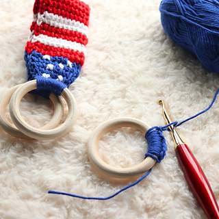 This pattern is for a fun Tunisian crochet towel topper featuring the American colors. It’s the perfect colorwork project to practice the basic Tunisian crochet stitches!