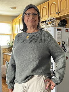 The starburst motif is far easier than it appears, and the hybrid yoke construction gives you the best of both worlds: a circular yoke for effortless textured, lace knitting that transitions into raglan shaping for a comfortable, flattering fit.