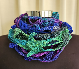 Once the strips are complete, they are joined end-to-end to form a continuous circle, resulting in a unique and decorative cowl that showcases the starry design.