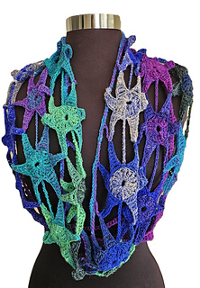 The Starry Cowl pattern is created by making three strips of nine starry motifs each.