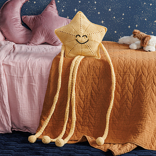 This friendly pal is a starry crochet curtain holder from Red Heart Super Saver.