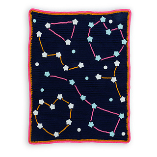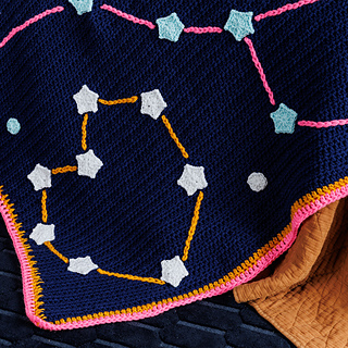 Explore the starry skies on this crochet blanket from Red Heart Super Saver Jumbo, Red Heart Super Glow, and Red Heart Super Saver Solids.