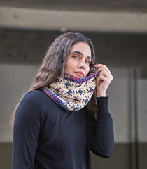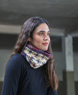 With two skeins (1 MC and 1 CC) you can make the Cowl and the matching Hat.