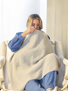 This pattern features a soft, textured fabric worked in Lemon Peel Stitch, a structured peekaboo opening that helps maintain eye contact while nursing, and sturdy straps worked in Thermal Stitch for comfort and stability.