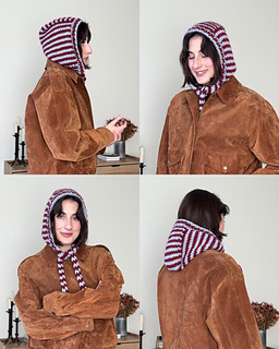 A balabonnet is a hybrid of a balaclava and a bonnet and it’s so cute! This pattern includes instructions for both a striped version and a solid-color version, as well as options for two scarf lengths and two end shapes. The shorter length sits like a traditional bonnet, while the longer length can be tied in a bow or wrapped around your neck. The scarf ends can be either rectangular or angled. The balabonnet is knit top-down, using stockinette stitch and 1×1 ribbing throughout.