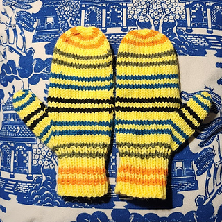 Mittens for children featuring stripes in 2 colors