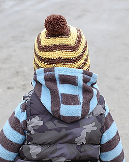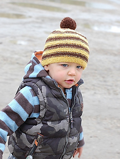 “I chose garter stitch for this Hat because it seemed to compliment the style just so. And me being me, went for the ‘inside out’ look. The beanie is structured on multiples of 8 with a balanced 4 point crown shaping. It’s a pleasant, simple knit, and flowed perfectly on the needles… the perfect, mindless knitting pattern! With a pom-pom of course, because all good retro inspired stripey beanies need pom-poms”