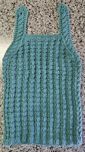 It’s worked seamlessly, from the bottom up, using Judy’s Magic Cast-On and the magic loop method at the beginning. After you get started, the knitting is very easy, using a knit/purl pattern and a basic cable border.