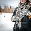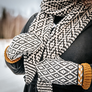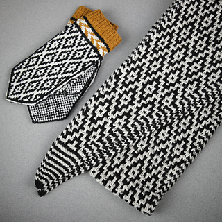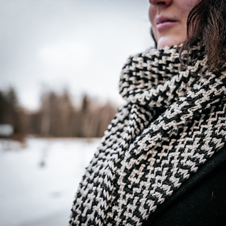 Strömsö Graphic Mosaic is a mosaic-knitted shawl featuring a repetitive, easy-to-memorize graphic pattern.