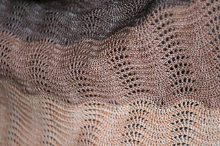 A standard crocheted ripple stitch gains extra movement with short rows that create wedges of undulations reminiscent of sand waves in sea beds. Each wedge has a simple two-row repeat, alternating between rows of single crochet and double crochet stitches. Working some rows into back loops only and others into both loops adds even more texture. The last row of each wedge smoothes out the short rows with stair-stepped stitch lengths at each transition. Although the pattern appears intricate, it’s really a simple combination of basic stitches.