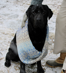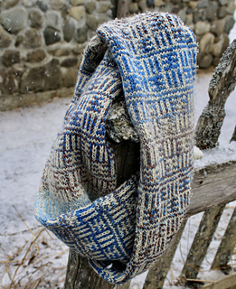 Instructions are included for 3 sizes, including a simple tubular neck-warmer, a medium length moebius-twist cowl, and a long infinity scarf. All use the same chart and can be made with or without a half-twist. The sample is in the medium size with the half-twist. Directions for joining the 2 ends when the knitting is finished include options for grafting (with instructions) or a three-needle bind-off.