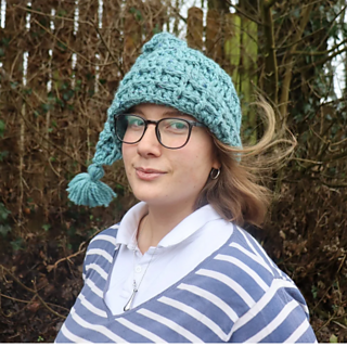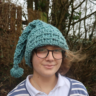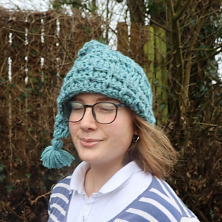The Sugarloaf hat is a pixie hat with a fold back brim, worked in waffle stitch. It is a quick and satisfying make, and works up very quickly in chunky yarn.