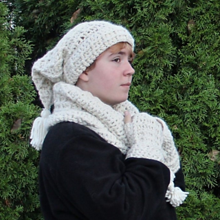 The pattern is available free on my web site, along with patterns for a matching mittens and cowl. You can also purchase a convenient ebook pdf download of all 3 patterns. The ebook comes in both UK and US crochet terms options, and in standard and large print options (see details below). The pattern was initially published by Crochet Foundry in tge December 2024 issue, and is available now for free, with added UK terms and large print options.