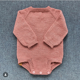 This long sleeved romper is worked with raglan shaping from the top down. We start knitting flat, in order to gain some space for the head and sew a button on the back, but after a few rows the work is joined in the round. Smaller needles are used on the ribs for a better fit.