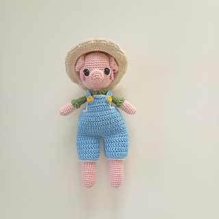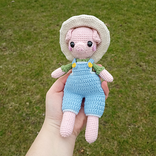 Meet Sunny the pig farmer! This pattern is amazing for intermediate crocheters, or beginners looking for a challenge. It is made using a 1.7mm hook, although it works with any yarn type or hook size.