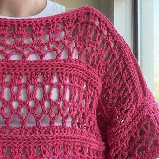 This crochet sweater is light, textured, and modern — perfect for a summer outfit. Easy construction and airy lace stitches create a beautiful, breathable look. The pattern includes step-by-step written instructions, photos for each row, and a crochet chart for visual crocheters. This top works up quickly and can be made in just a few days.