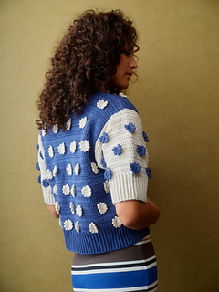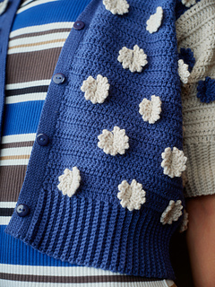 This cropped cardigan draws on the wildflower “super blooms” that appear in California after a rainy season. When dormant desert seeds get the moisture they need, they burst into colour all at once. This design features small flower motifs throughout to create a cheerful piece that’s fun to crochet and fun to wear.