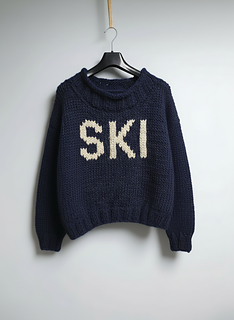 The body and sleeves are worked in stocking stitch, creating a smooth backdrop for the bold ski motif on the front. The motif is worked by following a clear chart included in the pattern.