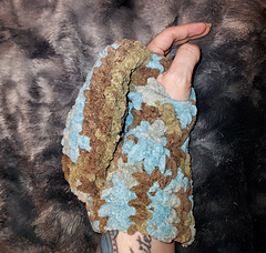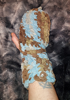 This is an easy pattern for a pair of incredibly warm fingerless mittens. This Coastal Cottage Bernat Blanket yarn is as soft as a cloud, and you couldn’t find a better yarn to make something cozy with.