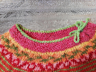 Strikk en supersøt liten baby- eller barnegenser i tynt ullgarn, med blomster som du velger (eller tegner) selv. Bland blader og blomster som du vil, og få en helt unik genser.