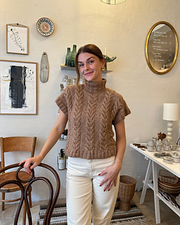 Den brune Svala Slipover er strikket i Moon i farve 103 Nougat.