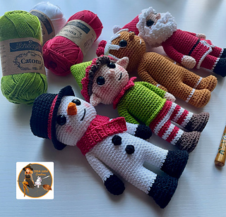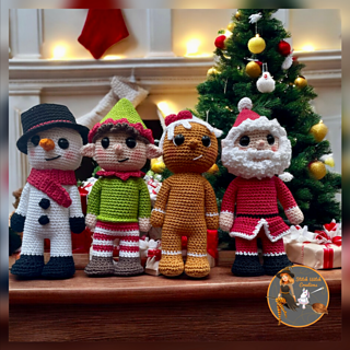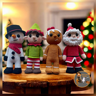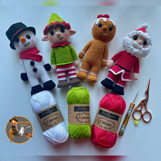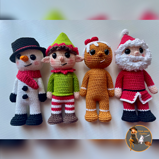 The pattern bundle includes Santa, Gingerbread Man, Little Elf and Snowman. Each finished friend is roughly 18/19cms when using the tools and yarn stated in the pattern.
