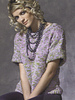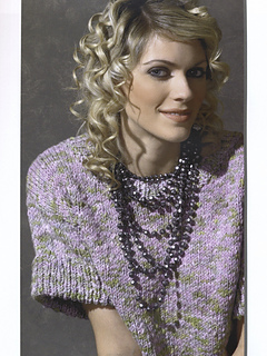 Tee-shirt shaped pullover in bulky yarn with short sleeves, ribbed edgings, wide crew neckline with picked-up and ribbed edging.