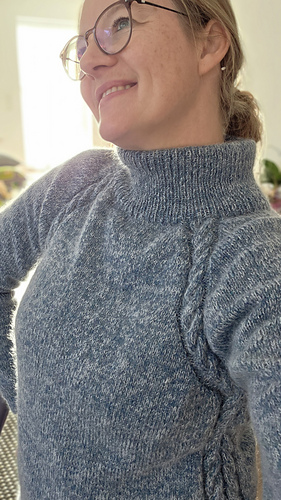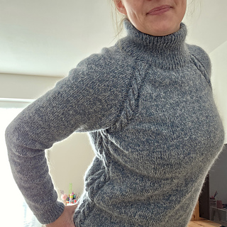 Er wird nahtlos von oben als Raglan gearbeitet. Das zurückhaltende Design erhält durch schlichte, dennoch elegante Zopfmuster an den Seiten das gewisse Etwas. Nicht nur Zopfmuster-Fans kommen hier auf ihre Kosten – auch ambitionierte Strickneulinge können sich dank des kurzen und gut verständlichen Musters an dieses Projekt heranwagen. Durch die Möglichkeit den Kragen an die eigenen Wünsche anzupassen, erhält der Sweater so verschiedene Looks.