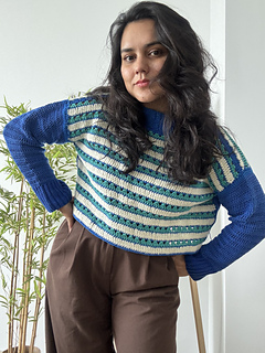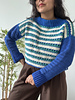 Materiales utilizados según talla: Para este proyecto utilicé tres materiales distintos de grosor DK, combinados para aprovechar los restos de hilados. Puedes tejer el top: en un solo color, para un acabado uniforme y minimalista, o alternando tres colores, como en mi muestra, para lograr un efecto más dinámico.