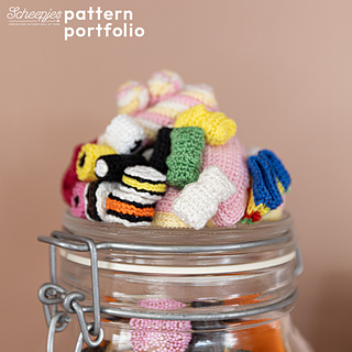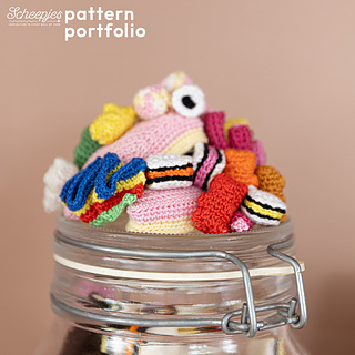 The Sweet and Sugary Candy Jar pattern includes full written instructions and is part of Scheepjes Pattern Portfolio Volume 06: Maxi, featuring six upcycling crochet projects by Kwannie. The booklet is available in print from Scheepjes retailers and as a digital download on Ravelry, in English and Dutch.