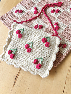 This listing is for the digital pdf pattern for the Sweet Cherry Satchel. This bag is part of the Sweet Cherry Collection which includes the satchel and the checkered tote.